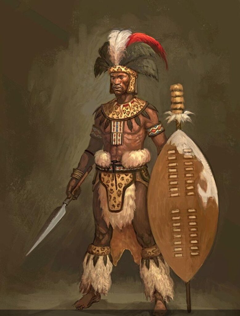 Uniformes, armas e equipamentos na Batalha de Isandlwana: Os guerreiros zulus eram organizados em regimentos por idade, e seu equipamento padrão consistia no escudo e na lança. A formação de ataque, descrita como os ” chifres da besta” , teria sido idealizada por Shaka, o rei zulu que estabeleceu a hegemonia zulu no sul da África. O corpo principal do exército desferia um ataque frontal, chamado de ” lombos”, enquanto os ” chifres ” se espalhavam por trás de cada um dos flancos inimigos, realizando o ataque secundário, muitas vezes fatal, na retaguarda do adversário. Cetshwayo, o rei zulu, temendo a agressão britânica, fez questão de comprar armas de fogo onde quer que pudessem ser encontradas. No início da guerra, os zulus possuíam dezenas de milhares de mosquetes e rifles, porém de baixa qualidade, e os soldados eram mal treinados em seu uso.