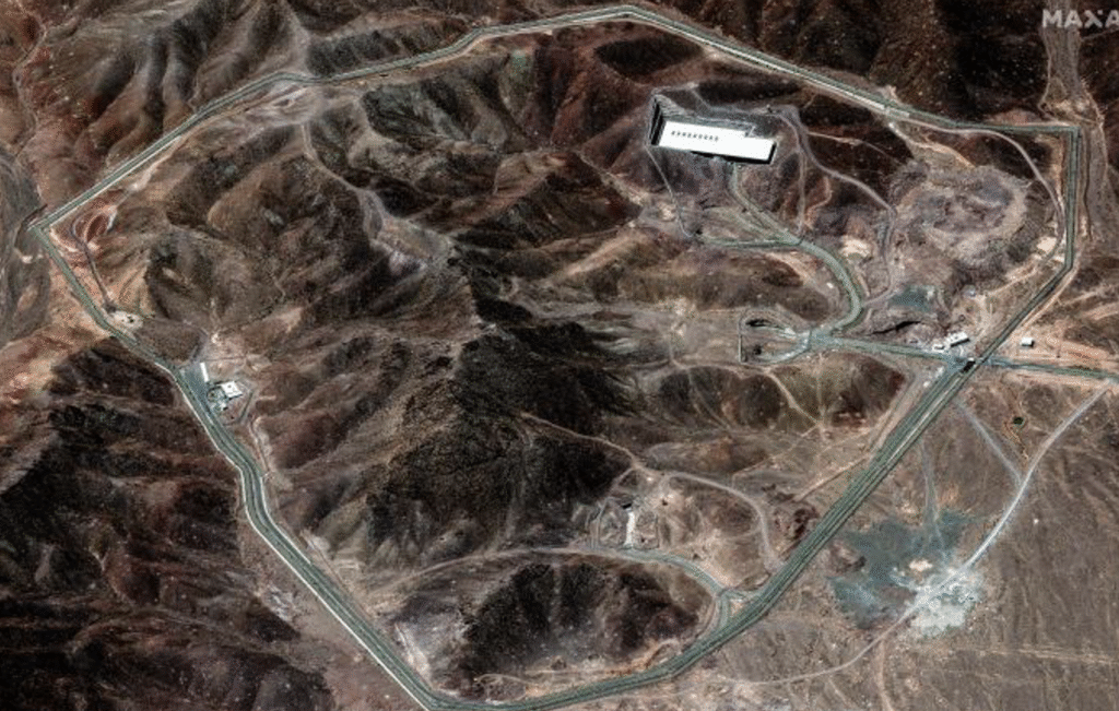 A posição da instalação nuclear de Fordow do Irã, enterrada sob uma montanha, torna difícil o alvo para danificar. Foto: MAXAR TECHNOLOGIES/epa-efe/shutterstock/Shutterstock