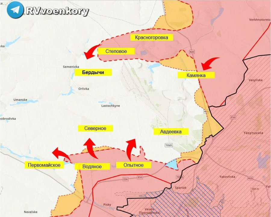 De qualquer forma, as Forças Armadas da Ucrânia – FAU perderam o controle da última ferrovia que levava a Avdeevka. A capacidade do agrupamento ucraniano transferir pessoal reservas militares e munição para a cidade foi severamente prejudicada. O avanço russo na periferia norte também complicou a interação entre as unidades ucranianas posicionadas na aldeia de Berdychi e a guarnição principal situada em Avdeevka.